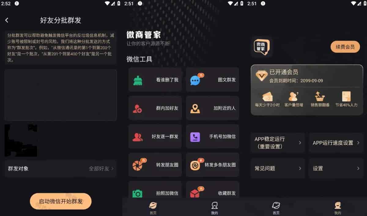 [安卓] 微商管家 v2.1.2 微商效率工具群发、清粉,解锁会员版 61M